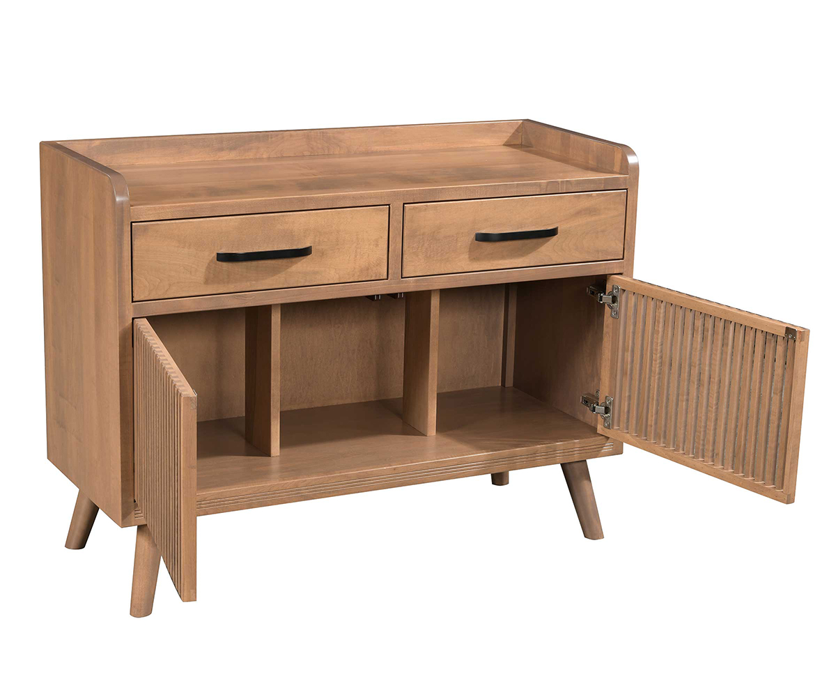 Features: • Dovetailed drawers • Full extension drawer slides • Push to open slatted doors