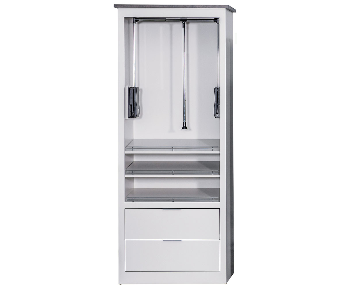 Features: • Pull down closet rod • Wire shoe rails • Dovetailed drawers • Full extension drawer slides