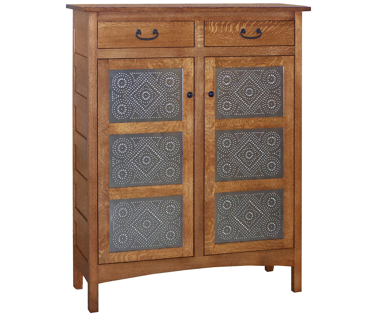 • Reversed panel wood doors in place of the tin