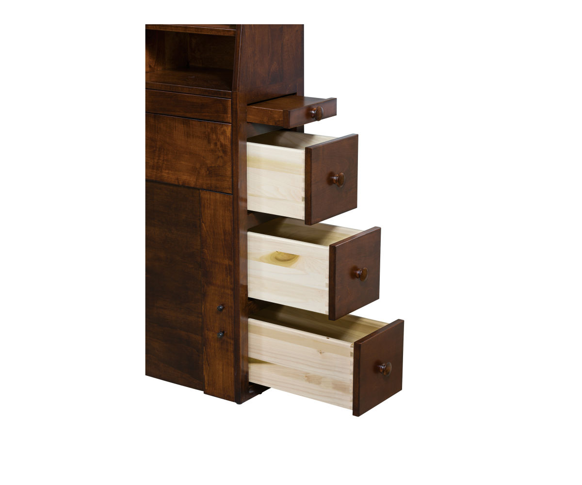 • Dovetailed drawers in the side of the headboard