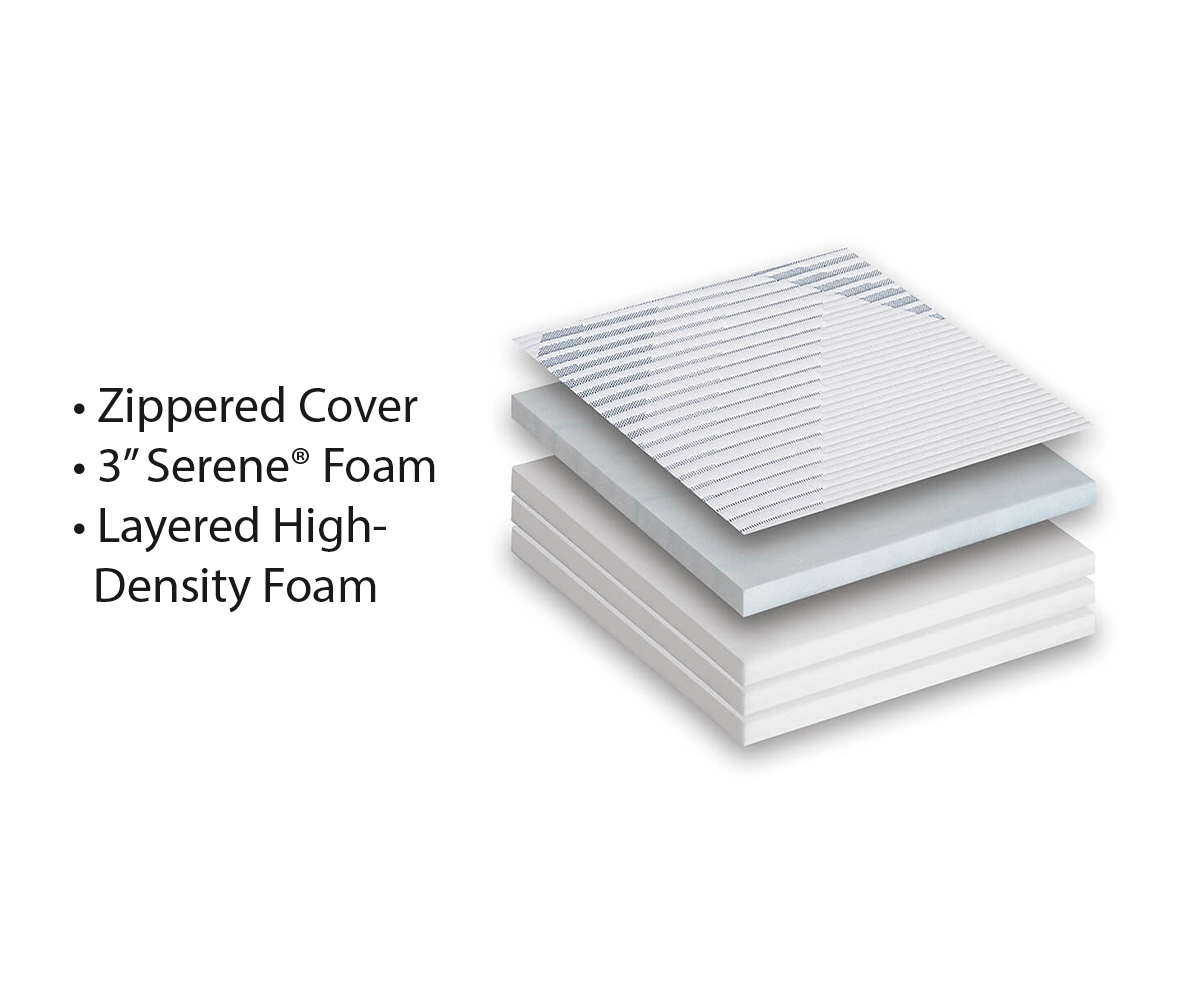 Take layers of high density foam and top them with 3” of Serene® foam and a zippered cover. Amy Marie is one of our softest mattresses.
